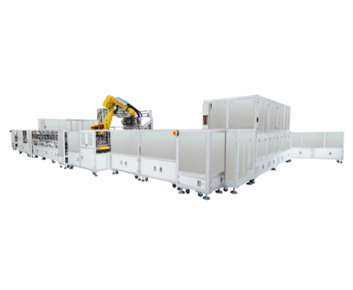 6.機器人碼垛:碼垛機器人每次抓取6個電芯,放入泡沫托盤,直至托盤擺滿;機器人取空托盤放入上一層,可按要求設定堆疊高度;